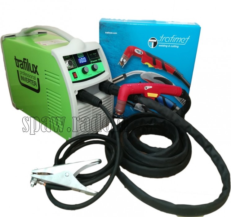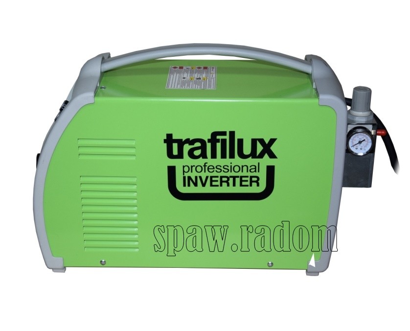 TRAFILUX PLAZMA 100 CNC to inwertorowa przecinarka plazmowa, do cięcia ręcznego lub maszynowego, zasilana z sieci 3-fazowej, wyposażona w system zajarzania bezstykowego HF. Przeznaczona do prac w warunkach halowych, warsztatowych, produkcyjnych. Swoje zastosowanie znajduję w zamkniętych pomieszczeniach, jak i pracach terenowych np. przy cięciu złomu, odpadów metalowych. Zaletą tego urządzenia jest wysoka jakość wykonania, solidność i trwałość zastosowanych komponentów elektronicznych. Plazma 100 CNC posiada możliwość pracy z automatycznymi wypalarkami, cyfrowy wyświetlacz prądu cięcia, płynną regulację opóźnienia wypływu gazu, oraz 2takt/4takt. Na tylnym panelu znajduję się wbudowany zespół przygotowania powietrza z reduktorem i manometrem. Urządzenie służy do cięcia różnego rodzaju metali, w tym stopów stali, miedzi, mosiądzu, aluminium. Przecinarka plazmowa TRAFILUX, zapewnia możliwość cięcia w wielu płaszczyznach, oraz w trudno dostępnych miejscach. Palnik plazmowy dołączony do urządzenia jest wysokiej klasy oryginalnym palnikiem TRAFIMET A101, który umożliwia zastosowanie różnego rodzaju nasadek oraz dysz tnących, dzięki czemu istnieje możliwość konfiguracji palnika pod indywidualne potrzeby użytkownika. Atutem konstrukcyjnym urządzenia są tranzystory wykonane w technologii IGBT. Cechą charakterystyczną dla tego typu tranzystorów jest, mniejsze zużycie energii, mniejsze zakłócenia elektromagnetyczne, przy większej wydajności oraz mocniejszym i stabilniejszym łuku.