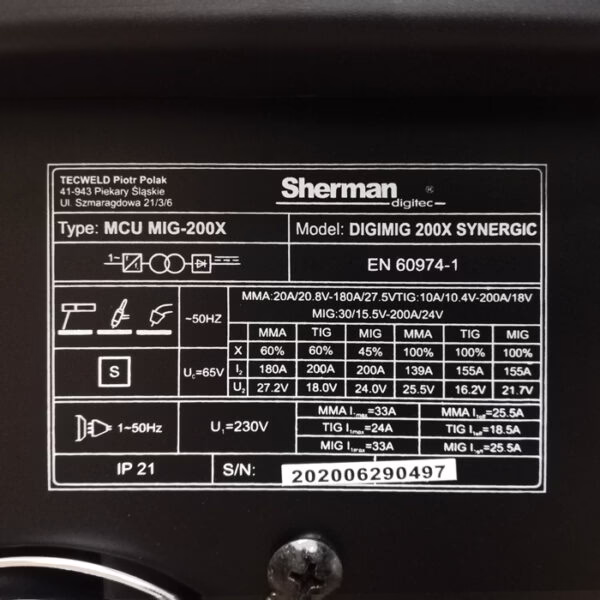 200A DIGIMIG 200X Synergic 230V SHERMAN (TEC8749) + zestawy