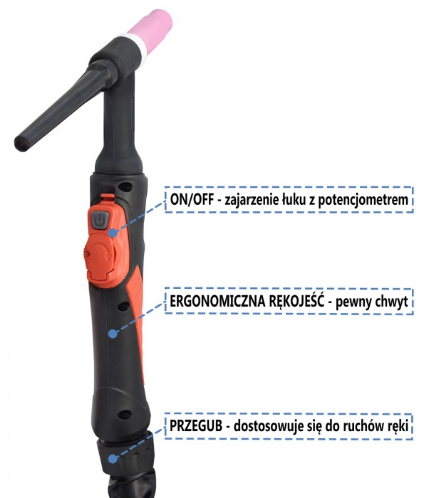 - uchwyt spawalniczy TIG typ SRT-26 z regulacją w rękojeści,