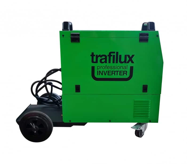 TRAFILUX MIG 285S MMA SYNERGIA to profesjonalny inwerterowy synergiczny półautomat spawalniczy, znajdujący swoje zastosowanie w spawaniu stali niskowęglowej, niskostopowej MAG, stali stopowej MIG oraz stopów aluminium. Ponadto umożliwia zastosowanie drutów samoosłonowych – rdzeniowych, służących do spawania bez dodatkowego gazu osłonowego. Urządzenie zapewnia możliwość spawania elektrodami otulonymi – funkcja MMA oraz spawalnia w trybie TIG LIFT. TRAFIMIG 285S jest stworzony do pracy w warunkach warsztatowych, jak i przemysłowych. Urządzenie może być użytkowane zarówno wewnątrz, jak i na zewnątrz pomieszczeń zamkniętych. Solidne koła z systemem hamulców, zapewniają stabilność w przypadku użycia dużych butli z gazem osłonowym. Atutem konstrukcyjnym urządzenia są tranzystory wykonane w technologii IGBT. Cechą charakterystyczną dla tego typu tranzystorów jest, mniejsze zużycie energii, mniejsze zakłócenia elektromagnetyczne, przy większej wydajności oraz mocniejszym i stabilniejszym łuku spawalniczym.