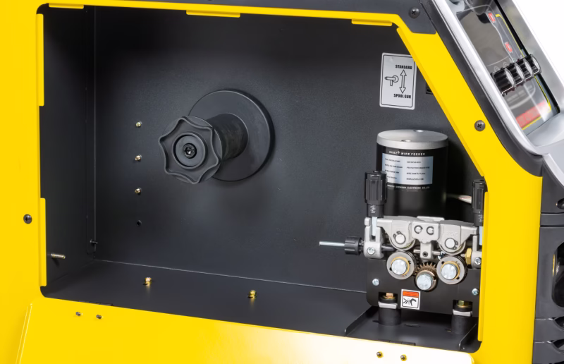 • Szpule drutu o dużej pojemności: Możliwość używania szpul do 15 kg drutu pozwala na dłuższe spawanie bez konieczności częstej wymiany materiału.