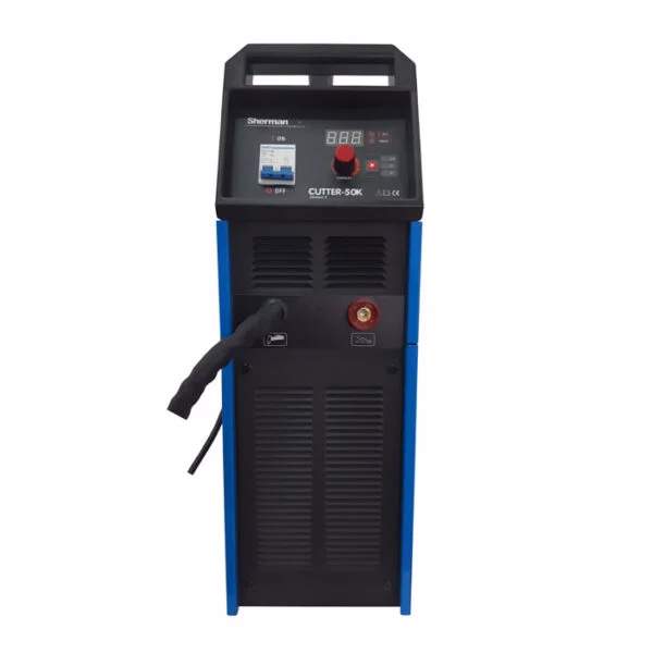Przecinarka CUTTER 50K to urządzenie wykonane w technologii MOSFET 100kHz służące do cięcia plazmą powietrzną blach i elementów stalowych, aluminiowych i miedzianych. Wyposażone jest w bezobsługową sprężarkę tłokową zapewniającą zasilanie przecinarki w powietrze niezbędne do pracy (nie wymaga regulacji ani kontroli ciśnienia). Głównym przeznaczeniem przecinarki są prace naprawcze i usługowe w pomieszczeniach zamkniętych lub zadaszonych, nie narażonych na bezpośrednie działanie wpływów atmosferycznych. Wbudowana sprężarka powietrza nie wymaga regulacji ani kontroli ciśnienia.