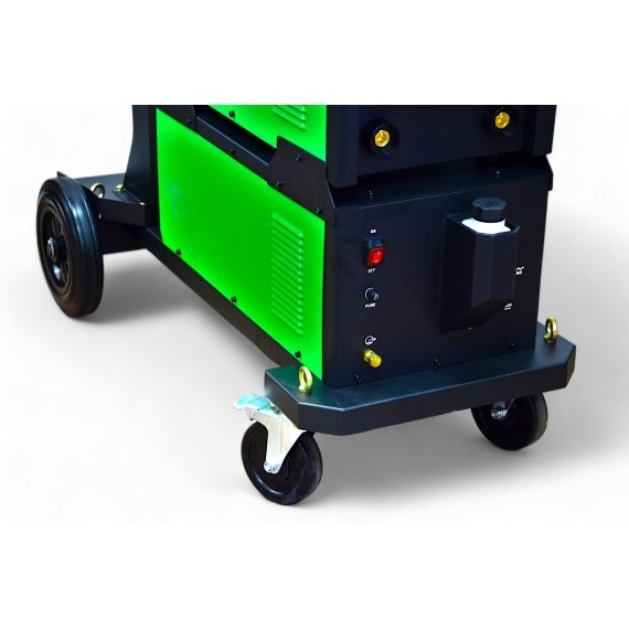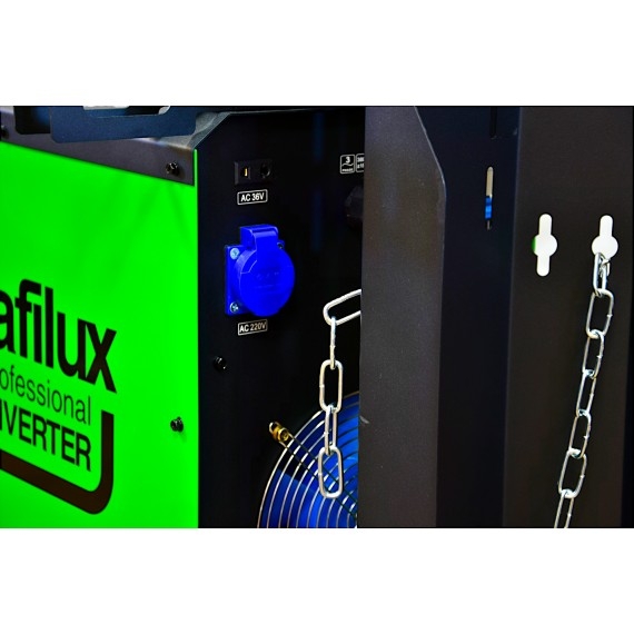 TRAFILUX TRAFIMIG 500 MMA to profesjonalny inwerterowy półautomat spawalniczy, znajdujący swoje zastosowanie w spawaniu stali niskowęglowej, niskostopowej MAG, stali stopowej MIG oraz stopów aluminium. Urządzenie zapewnia możliwość spawania elektrodami otulonymi (funkcja MMA). TRAFIMIG 500 MMA jest stworzony do spawania konstrukcji średnich oraz ciężkich w warunkach warsztatowych, jak i przemysłowych. Urządzenie może być użytkowane zarówno wewnątrz, jak i na zewnątrz pomieszczeń zamkniętych, poszerzone przednie podwozie, zapewnia stabilność w przypadku użycia dużych butli z gazem osłonowym. Duże koła transportowe dają możliwość przemieszczania spawarki po nierównym podłożu. Urządzenie posiada wydzielony zespół podający oraz chłodnicę cieczy. Atutem konstrukcyjnym urządzenia są tranzystory wykonane w technologii IGBT. Cechą charakterystyczną dla tego typu tranzystorów jest, mniejsze zużycie energii, mniejsze zakłócenia elektromagnetyczne, przy większej wydajności oraz mocniejszym i stabilniejszym łuku spawalniczym.