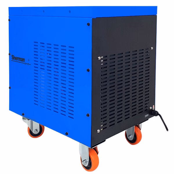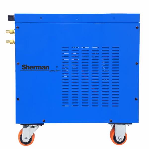 Chłodnica WRC 600A2 ALARM to w pełni profesjonalne urządzenie przeznaczone do chłodzenia cieczą uchwytów spawalniczych MIG/MAG i TIG oraz innych podzespołów i urządzeń wymagających chłodzenia w obiegu zamkniętym. Model WRC 600A2 ALARM dzięki dużej zdolności chłodzenia jest szczególnie polecany do chłodzenia dużych zgrzewarek oraz dużych stanowisk spawalniczych, które mogą zawierać nawet kilka urządzeń chłodzonych cieczą. Chłodnica przystosowana jest do pracy ciągłej. Charakteryzuje się prostą i zwartą konstrukcją. Zastosowanie wymiennika ciepła zbudowanego na miedzianej wężownicy zdecydowanie zwiększa skuteczność chłodzenia oraz przedłuża żywotność urządzenia. Chłodnica wyposażona jest w czujnik przepływu z alarmem wizualnym oraz dźwiękowym. Czujnik przepływu uaktywnia alarm w momencie braku przepływu czynnika chłodzącego spowodowanego niedrożnością przewodów wodnych, otwartym obiegiem płynu lub jego zbyt niskim stanem w chłodnicy. Usunięcie przyczyny alarmu powoduje jego automatyczne wyłączenie.