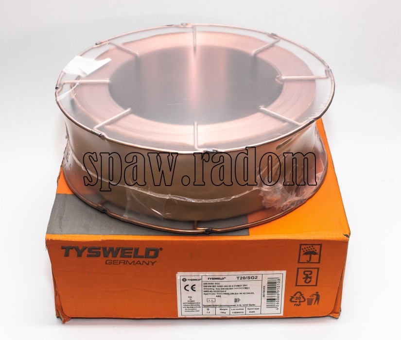 Drut elektrodowy manganowo – krzemowy, miedziowany, przeznaczony do spawania metodą MIG/MAG stali niskowęglowych konstrukcyjnych oraz drobnoziarnistych stali węglowo manganowych. Pozwala na stosowanie zarówno wysokich natężeń prądu przy łuku natryskowym, jak i niskich przy zwarciowym przenoszeniu metalu. Drut spawalniczy Tysweld T20 występuje tylko w nawoju precyzyjnym i jest szeroko stosowany w przemyśle inżynieryjnym, motoryzacyjnym, petrochemicznym, przy budowie kotłów i statków, oraz kontenerów. Ten wysokiej jakości drut cieszy się zasłużenie bardzo dobra reputacją, którą zawdzięcza wysokiej jakości podawania, stabilności łuku i jego wyjątkowej charakterystyce. Dbając o niezmienną jakość, każda szpula poddawana jest wewnętrznej kontroli jakości.