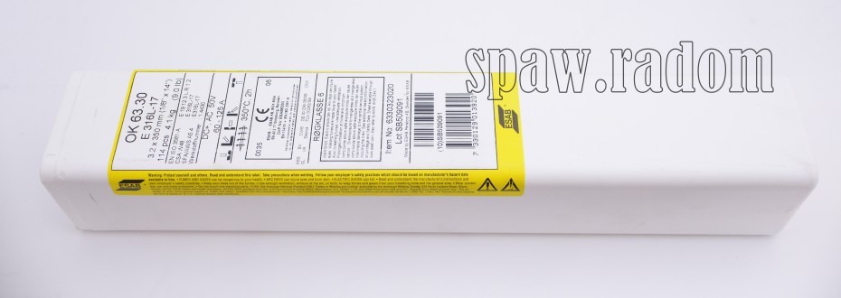 OK 63.30 (316L) to elektroda ze stali nierdzewnej o bardzo małej zawartości węgla, przeznaczona do spawania stali typu 18Cr12Ni2,8Mo. Przydatna również do spawania stali stabilizowanych o podobnym składzie chemicznym, gdy trzeba uzyskać odporność na pełzanie właściwą dla materiału bazowego. Zajarzanie łuku przy użyciu elektrody OK 63.30 jest bardzo łatwe, uzyskane spoiny cechuje doskonały wygląd, a powstały żużel daje się bardzo łatwo usuwać.