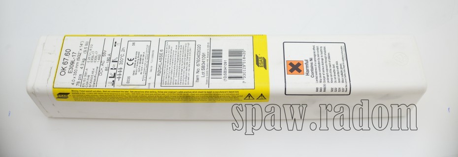 OK 67.60 to elektroda ze stali nierdzewnej o zwiększonej zawartości składników stopowych, przeznaczona do spawania stali nierdzewnych ze stalami niskowęglowymi i stalami niskostopowymi, do napawania stali niskowęglowej oraz do wykonywania warstw graniowych w stalach platerowanych. Elektrodę cechuje doskonalą spawalność we wszystkich pozycjach (z wyjątkiem pionowej w dół), przy użyciu źródeł prądu zarówno przemiennego (AC), jak i stałego (DC).