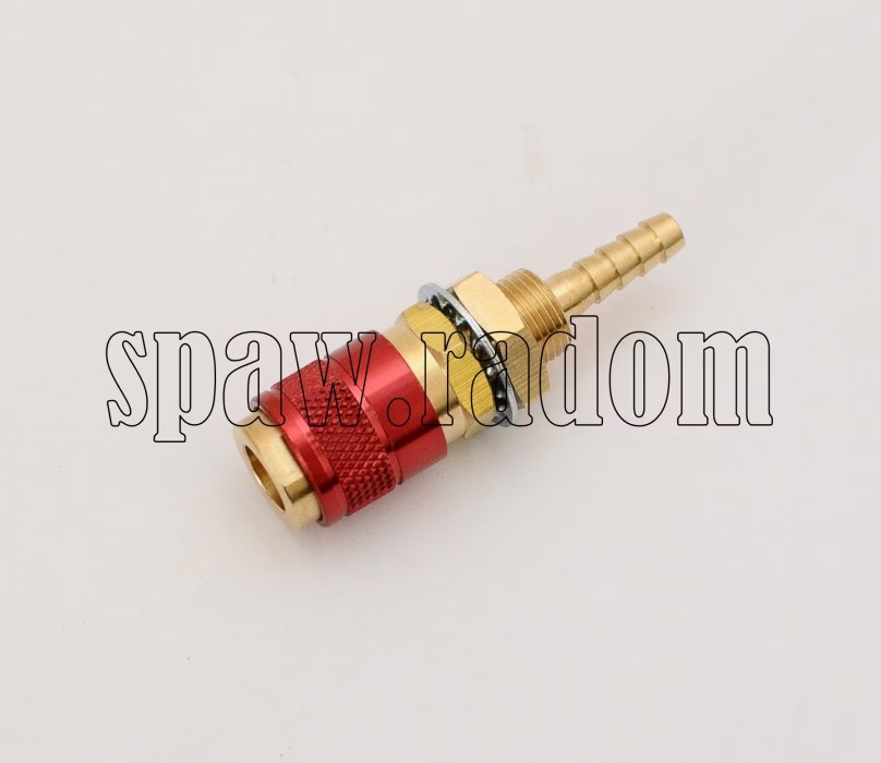 Gniazdo jednostronnie odcinające szybkozłącze, typ 21 z króćcem na wąż 6mm. Ma zastosowanie w urządzeniach spawalniczych oraz pneumatycznych. Wykonane z mosiądzu, mocowane do przegrody, w dowolnych położeniu.
