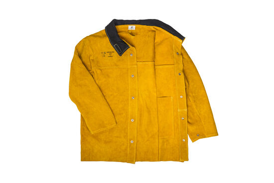 Kurtka ze 100% dwoiny zapewnia najlepszą ochronę przed odpryskami spawalniczymi i stopionymi materiałami. Funkcje premium obejmują wewnętrzną kieszeń na narzędzia i stójkę z podszewką ognioodporną z zapięciem na rzep. Z przodu zastosowano w pełni chronioną wersję zatrzaskową, ułatwiającą komfortowe użytkowanie. Maksymalny komfort osiąga się dzięki wstawkom pod pachami, ograniczającym przesuwanie się rękawów podczas czynności wykonywanych nad głową i sprawiającym, że całe ramiona są zakryte. Regulacja zatrzasków w dwóch pozycjach na nadgarstku ułatwia dopasowanie i zabezpieczenie stopnia dopasowania przed rozregulowaniem.
