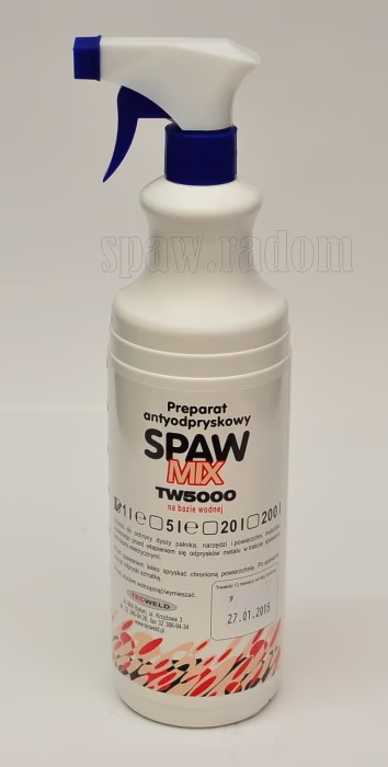 Preparat antyodpryskowy SPAWMIX-TW5000 jest profesjonalnym produktem, przeznaczonym do ochrony końcówek prądowych oraz dysz gazowych uchwytów spawalniczych oraz powierzchni materiału spawanego i narzędzi przed wtapianiem się odprysków ciekłego metalu podczas procesu spawania technikami elektrycznymi. Dopuszczony do obiegu handlowego przez Państwowy Zakład Higieny w Warszawie.
