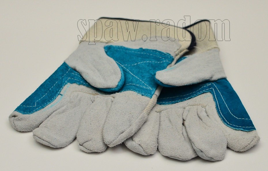 Rękawice robocze wzmocnione naturalną skórą dwoiną bydlęcą z dodatkowym wzmocnieniem, tkanina bawełniana.