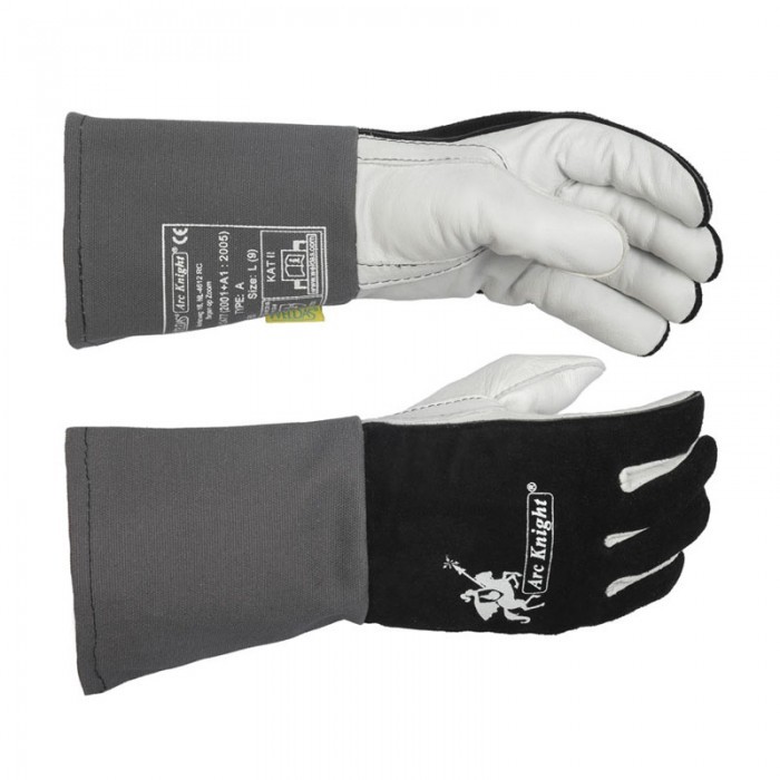 Arc Knight® rękawice spawalnicze o wysokim komforcie do wszystkich aplikacji spawalniczych. Czarna dwoina bydlęca i biała licowa skóra wołowa. Najwygodniejsze na świecie rękawice spawalnicze z izolacją powietrzną COMFOflex®. Ognioodporna poduszeczka powietrzna oraz wchłaniająca pot podszewka dostarczają niezwykłego komfortu oraz dodatkowej izolacji.