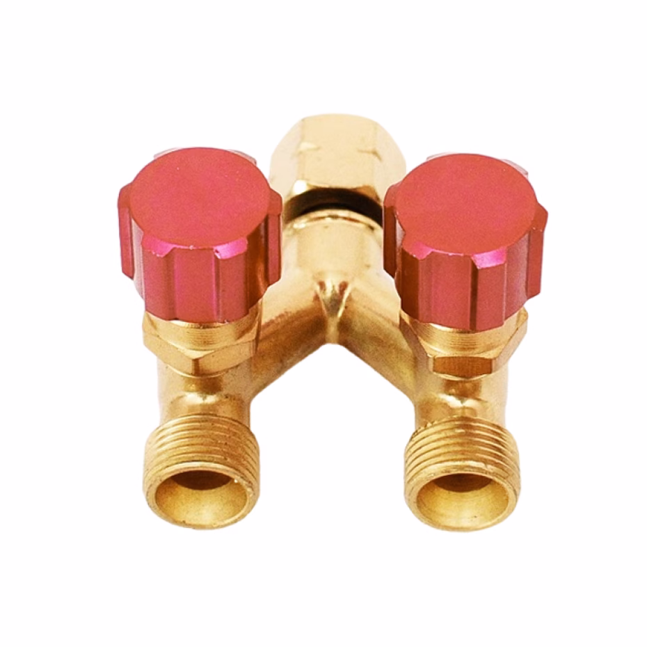Rozgałęźnik tlenowy 38/” LH umożliwia jednoczesne pobieranie gazu przez dwa urządzenia.