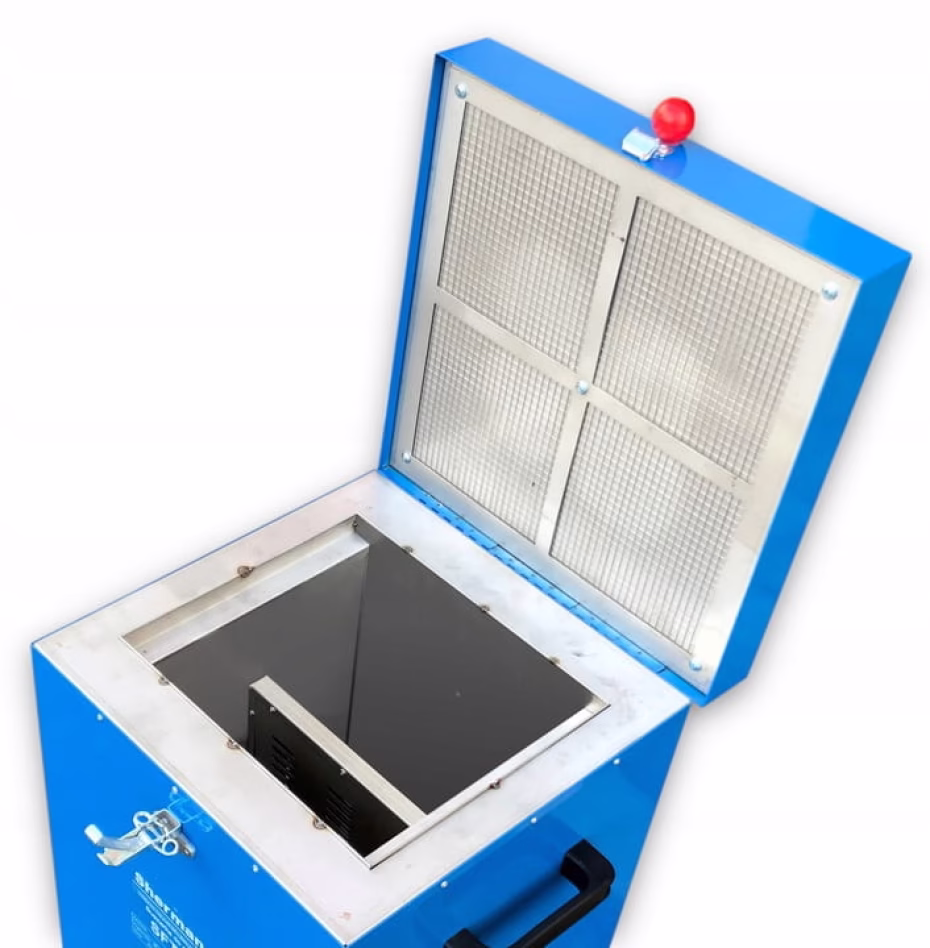 Suszarka do elektrod spawalniczych służy do właściwego przechowywania elektrod na stanowiskach spawalniczych. Przeznaczona jest do pracy o dużym natężeniu. Dobra izolacja termiczna obudowy oraz pewne zamknięcie komory zapewniają małe straty energii, obniżając koszty wygrzewania. Posiada możliwość płynnej regulacji temperatury wyposażona jest w termostat wyłączający grzałkę po uzyskaniu właściwej temperatury. Włączenie grzałki sygnalizowane jest zapaleniem lampki na panelu czołowym.