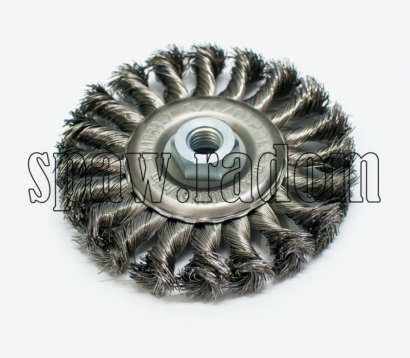 Szczotka tarczowa druciana na gwint M14, przeznaczona jest do samodzielnego oczyszczania metalowych powierzchni w celu ich renowacji lub obróbki, przy współpracy ze szlifierkami kątowymi. Wyprodukowana ze stali, skutecznie usuwa stare powłoki farb i lakierów, a także żużel oraz rdzę.