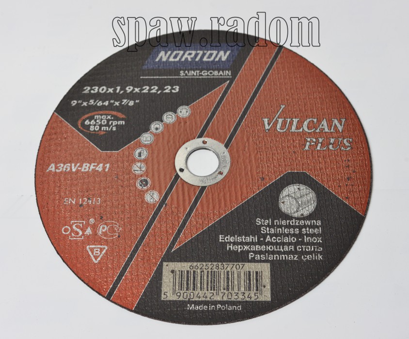 Tarcza do cięcia inox Vulcan Plus 230×1.9×22.23 NORTON (N0067)