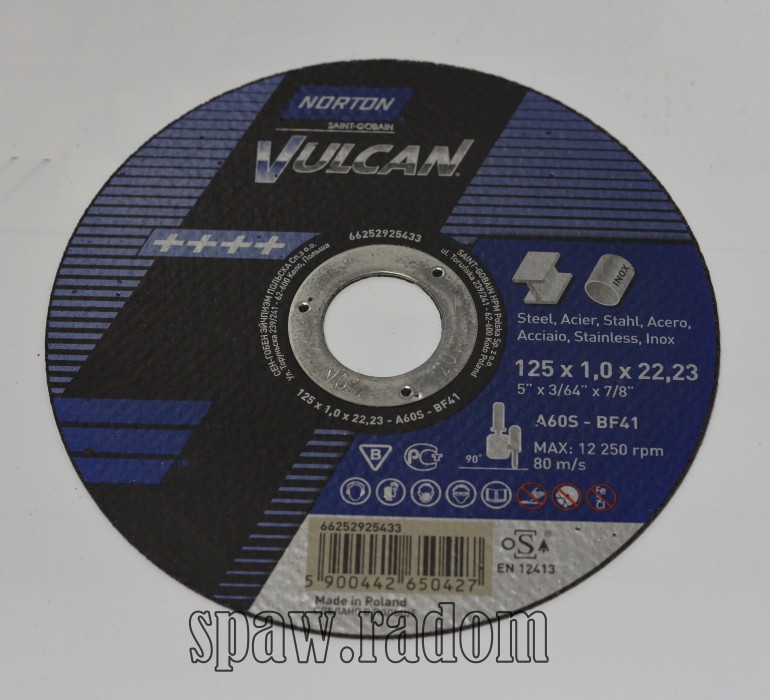 Tarcza do cięcia metal/inox Vulcan 125×1.0x22.23 NORTON (N0049)
