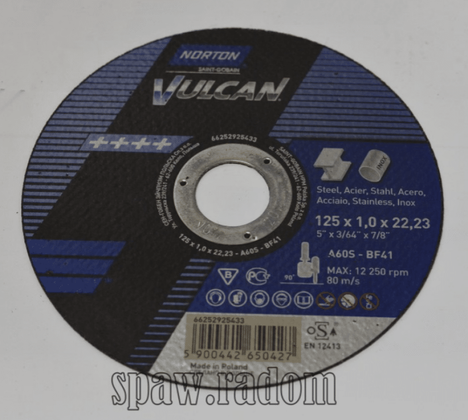 Tarcza do cięcia metal/inox Vulcan 125×1.0x22.23 (zestaw 10szt. w puszcze) NORTON (N4799)