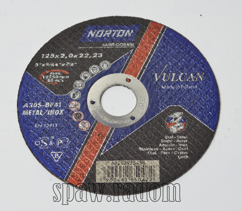 Tarcza do cięcia metal/inox Vulcan 125×2.0x22.23 NORTON (N0051)