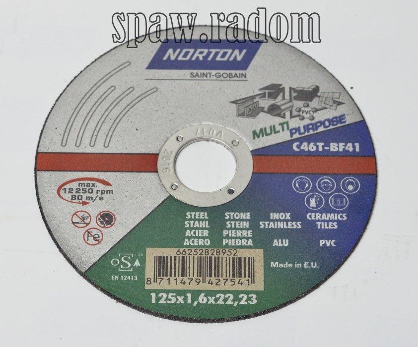 Tarcza do cięcia uniwersalna MULTI-PURPOSE 125×1.6×22.23 NORTON (N0071)