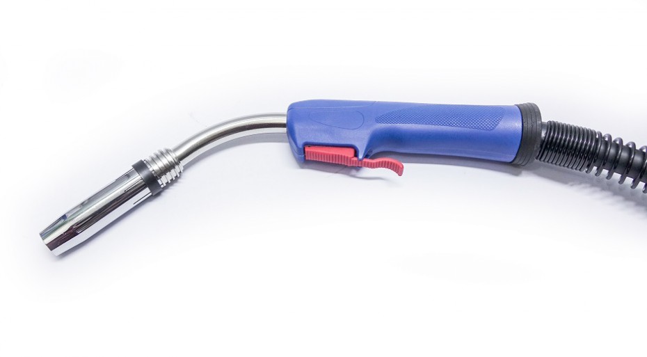 Uchwyt spawalniczy przeznaczony do spawania metodą mig/mag w osłonie gazowej. Zakończony jest wtykiem EURO, który pasuje do większości półautomatów spawalniczych. Uchwyt wyposażony jest w przewód kulowy ze sprężyną, który chroni przewód przed załamywaniem się oraz ruchome piny we wtyku EURO.
