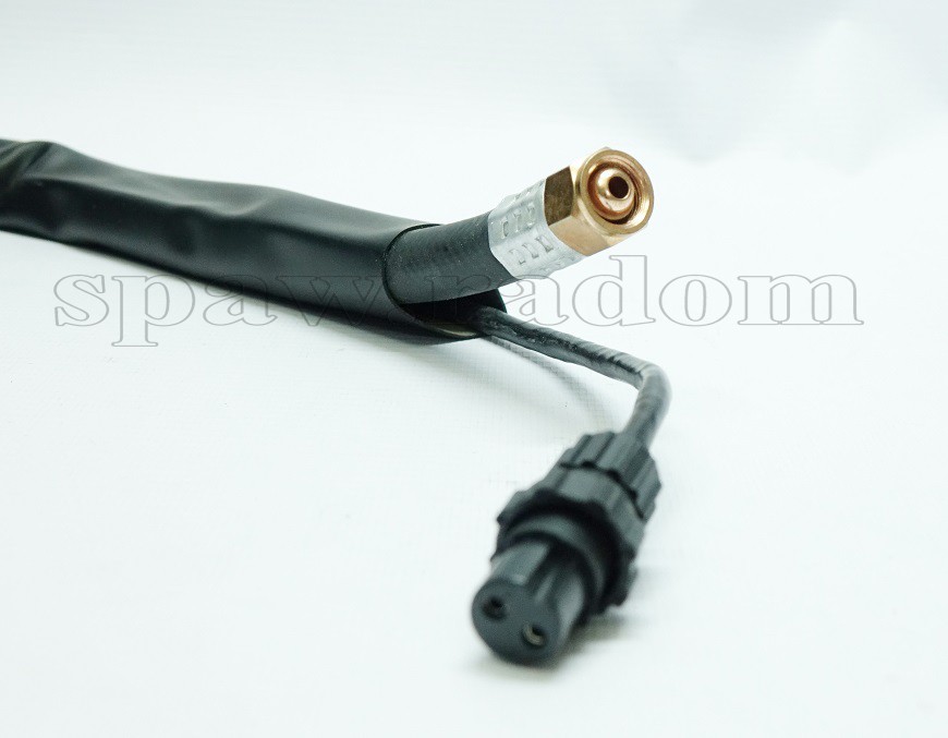 Przyłącze prądowe wyposażone jest we wtyk typu DINSE wraz z wtykiem szybkozłącza gazowego. Przewody sterownicze nie posiadają wtyczek sterujących.